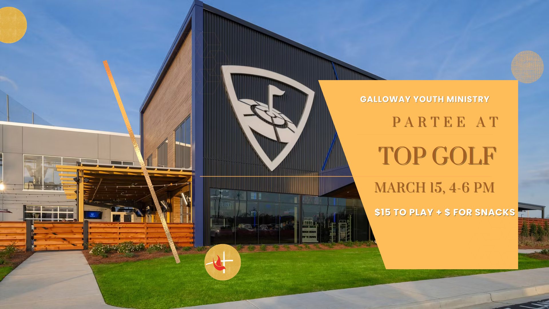 Back to All Events Youth Top Golf Sunday, March 15, 2026 4:00 PM 6:00 PM Google Calendar ICS We are swinging into the second half of the semester by spending one last Sunday evening of Spring Break together before the end of the semester ramps up! Bring $15 to play and bring snack $$!