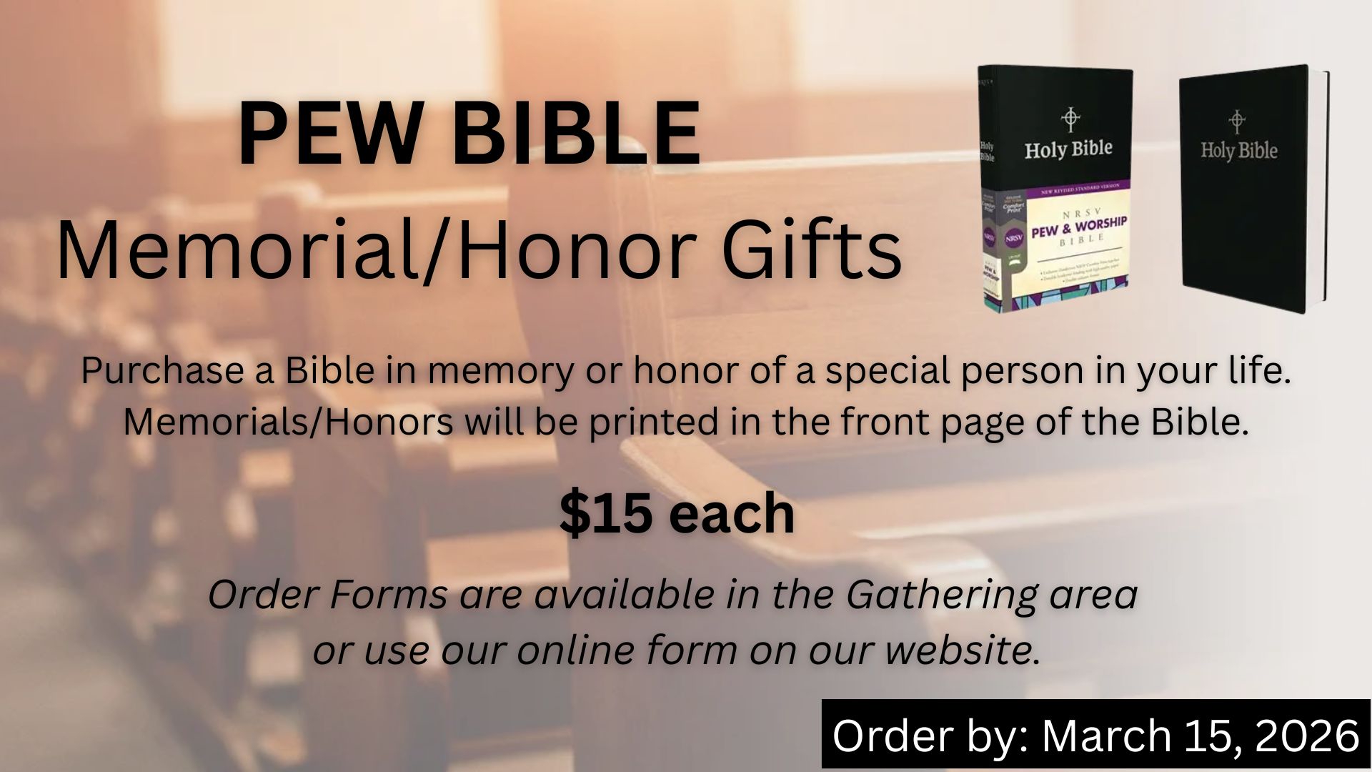 The congregation is invited to learn more and be part of this important conversation at a Church-Wide Sunday School: State of the Church Address: